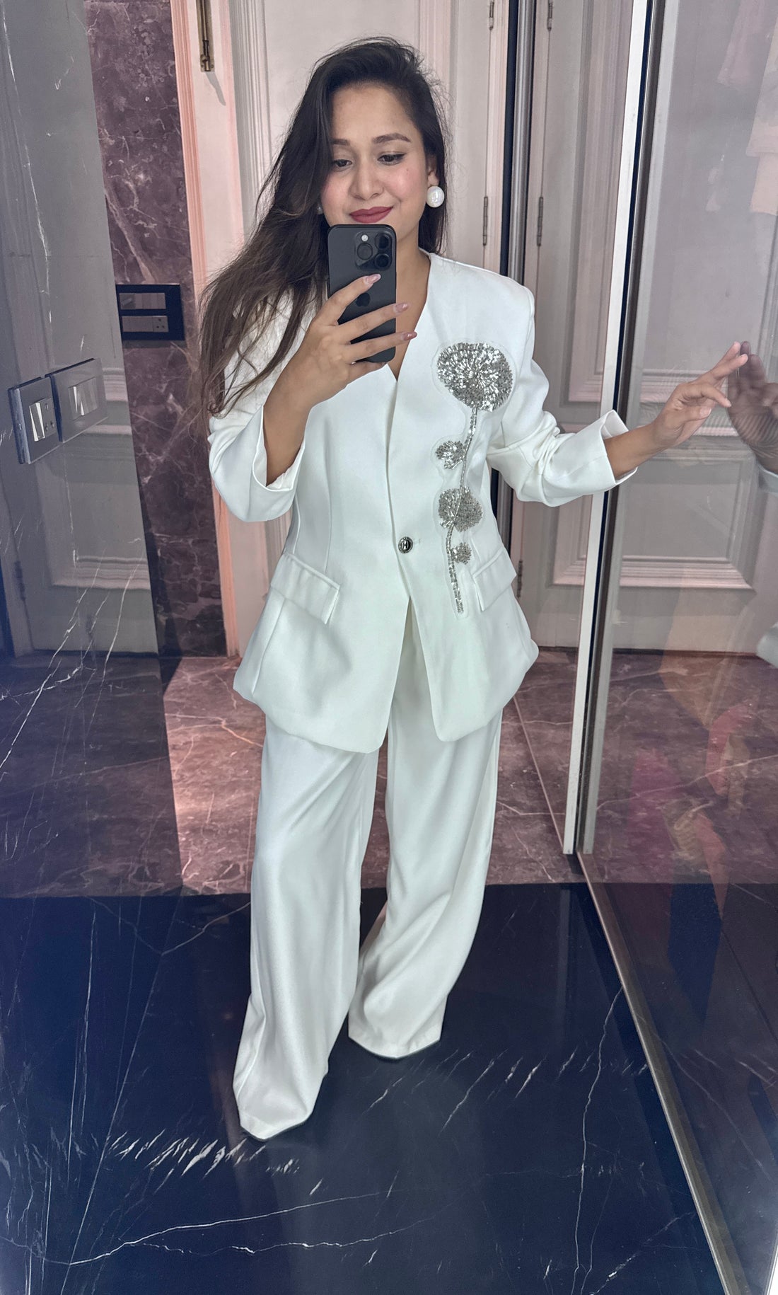 Embrace comfort and style with this two-piece embellished lounge wear set, perfect for winter relaxation...