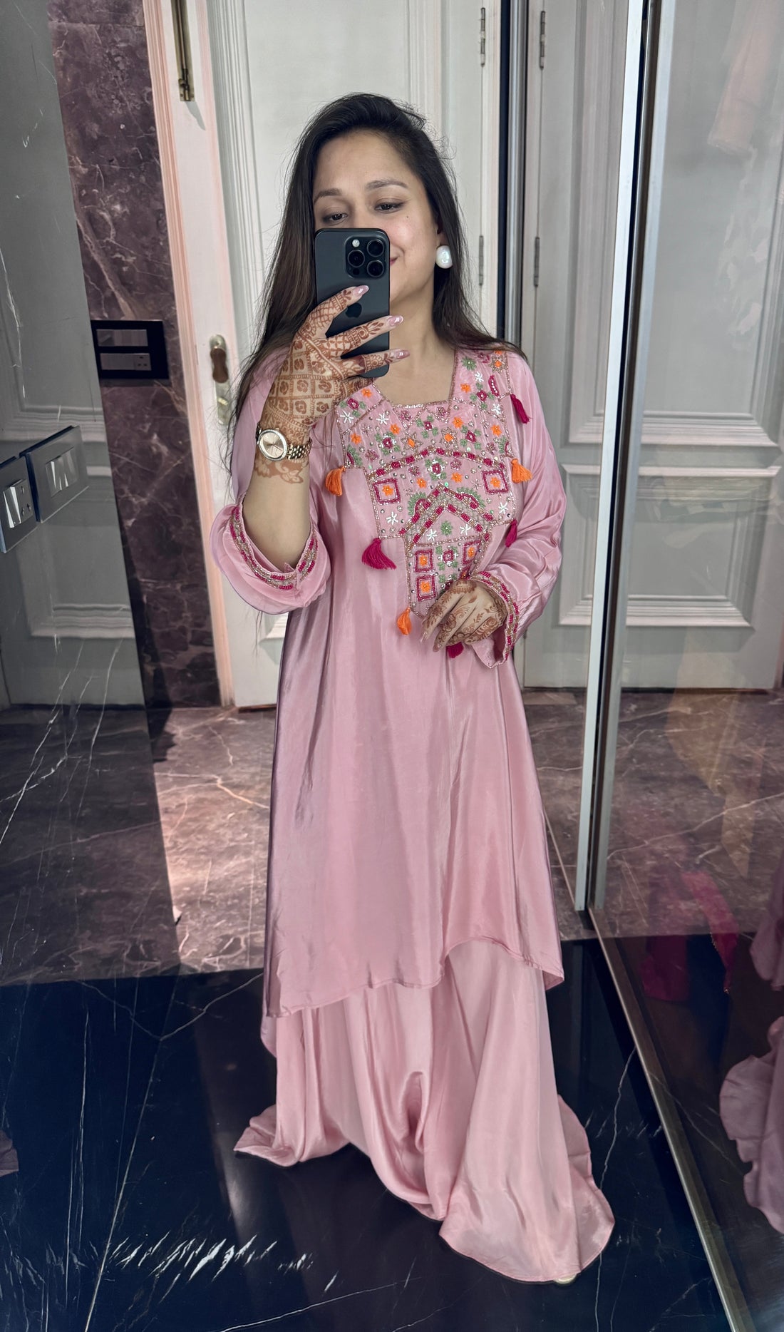 Elevate your festive wardrobe with this stunning Chinon sharara suit, perfect for weddings and special...