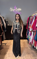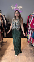 The Maya Indowestern Set is a sophisticated 3-piece ensemble featuring a padded blouse, a fully embellished side tie-up jacket, and a pure crepe cowl skirt. This outfit is ideal for formal occasions such as parties and mehendi functions, offering an elegant blend of modern and traditional styles for a polished appearance.