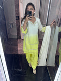 Elevate your festive wardrobe with this exquisite Farshi salwar suit, crafted from premium crepe fabric. The ombre kurti features intricate hand-worked detailing that showcases traditional artistry, while the flowing Farshi silhouette offers graceful movement and timeless elegance. Perfect for celebrations and special occasions, this piece seamlessly blends classic Indian aesthetics with contemporary styling. Lightweight and comfortable, it's an ideal choice for those who appreciate refined craftsmanship and understated luxury in their ethnic wear collection.